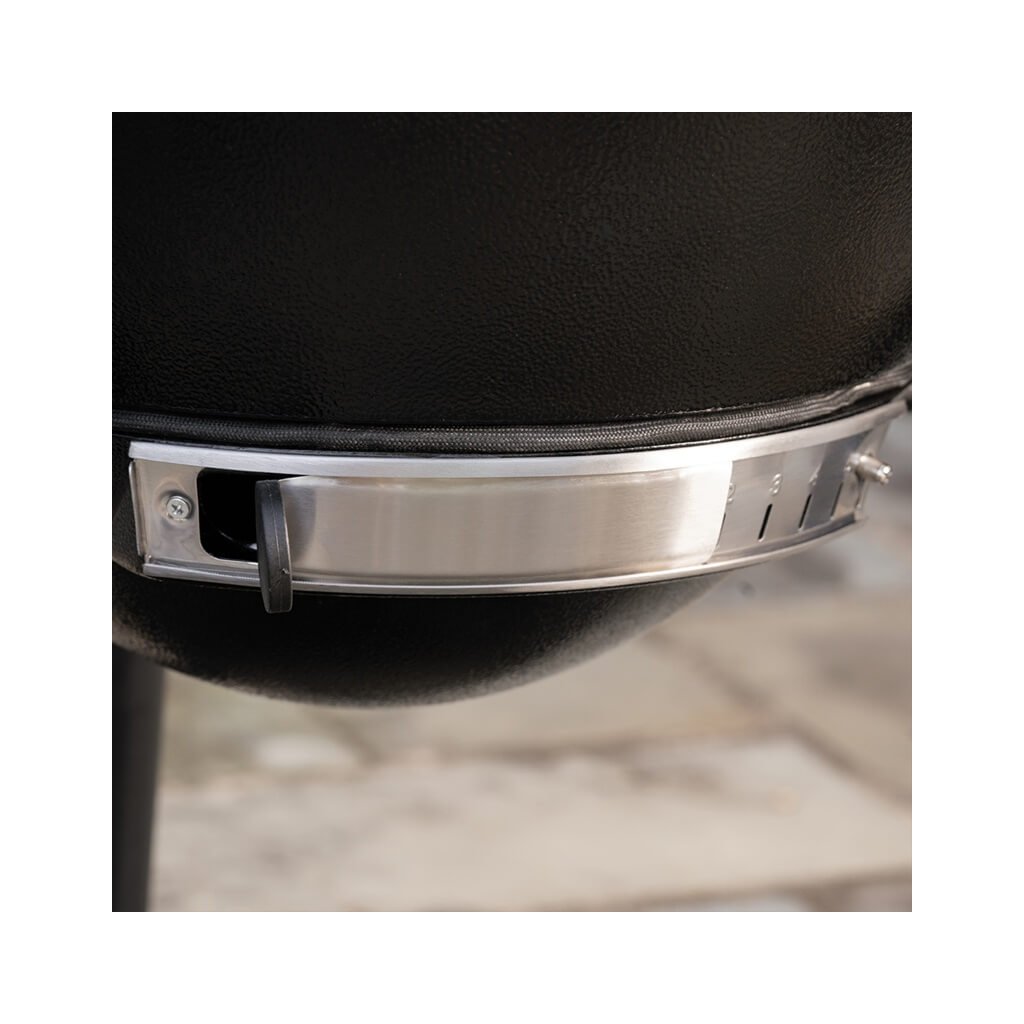 - Dvojité nastaviteľné ventilačné klapky na udržiavanie požadovanej teploty pri grilovaní alebo údení