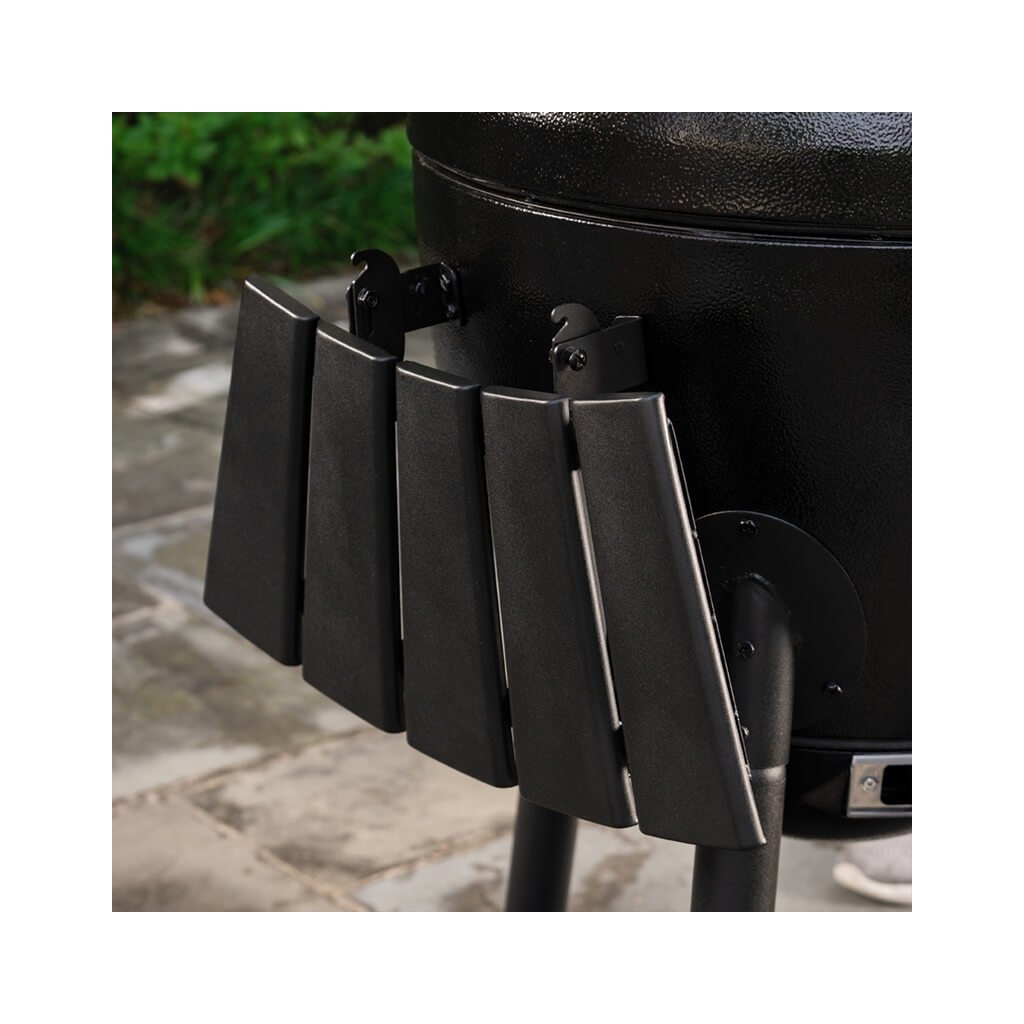 - Všestranný teplotný rozsah 93 – 370 °C (200-700 °F) pre pomalé údenie pri nízkych teplotách alebo prudké opekanie pri vysokej teplote