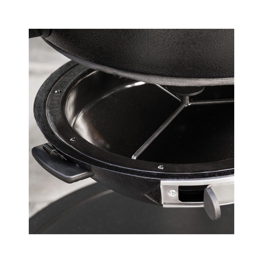 - Gril na drevené uhlie v štýle Kamado s vozíkom a uzamykateľnými kolieskami pre jednoduché premiestňovanie grilu