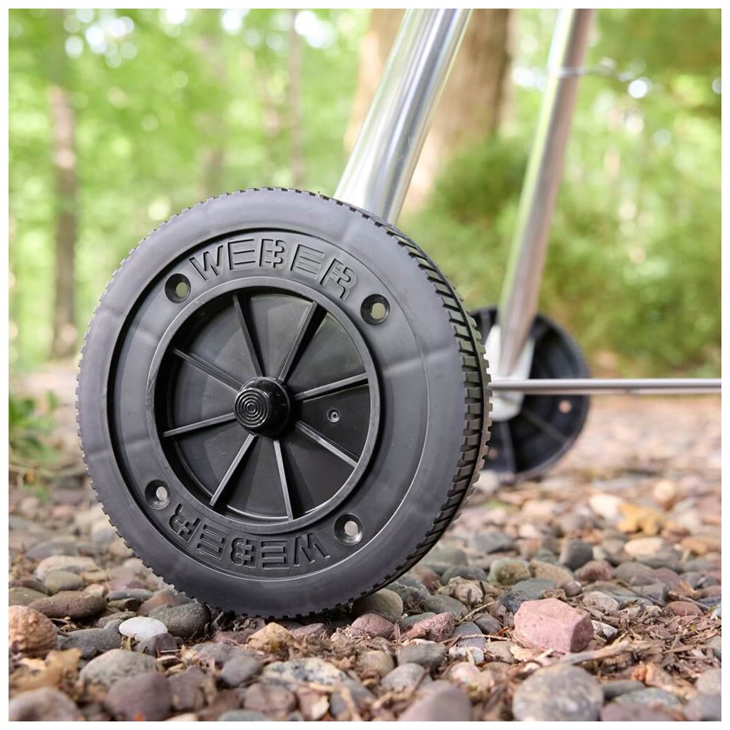 Umožňuje kontrolovať teplotu vnútri grilu bez toho, aby ste museli otvárať poklop. - Kolesá odolné voči zlomeniu a nepriaznivému počasiu