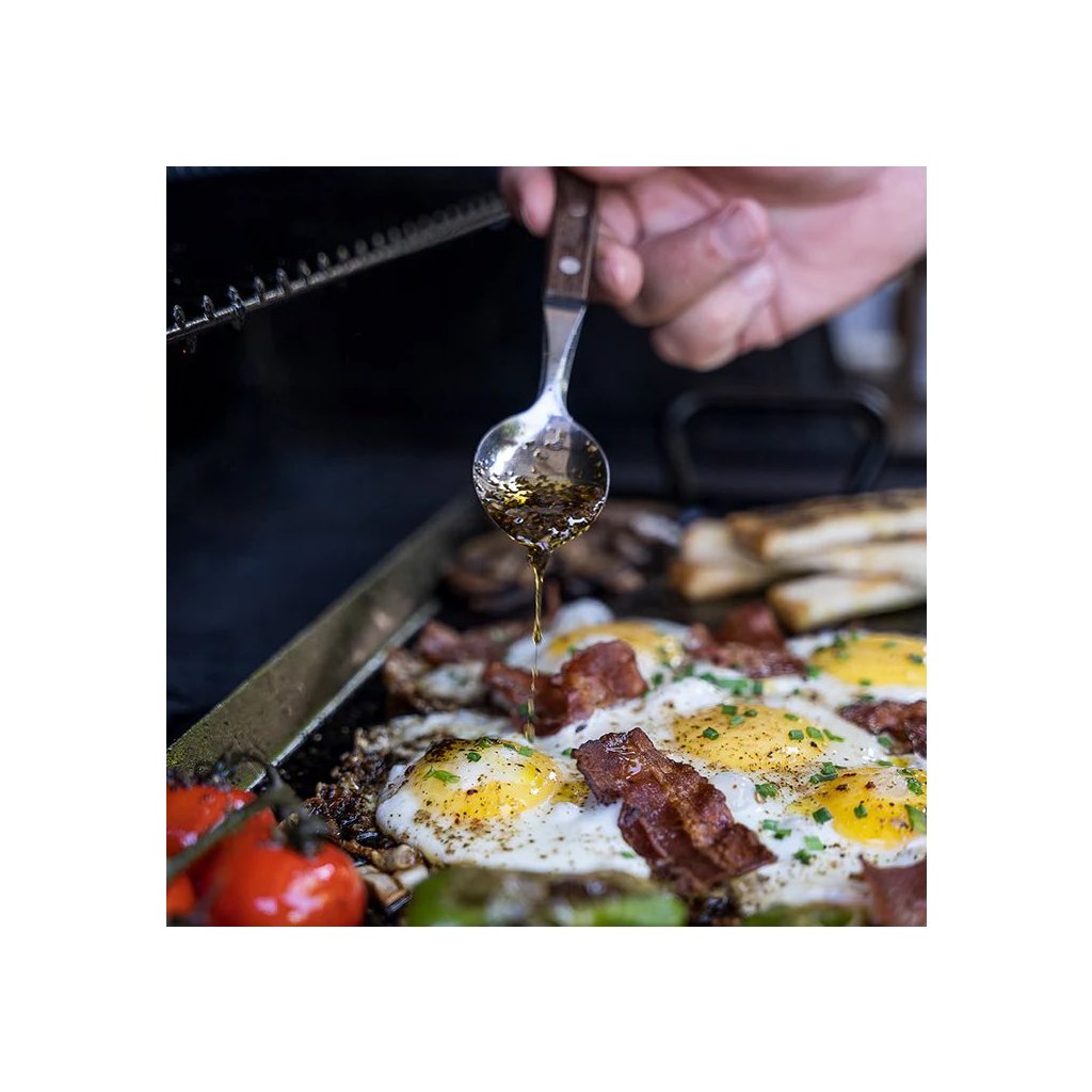 Zloženie: Cibuľa, morská soľ, korenie (korenie čierne, paprika granule červené), bylinky (petržlen, oregano) trstinový cukor, cesnak.