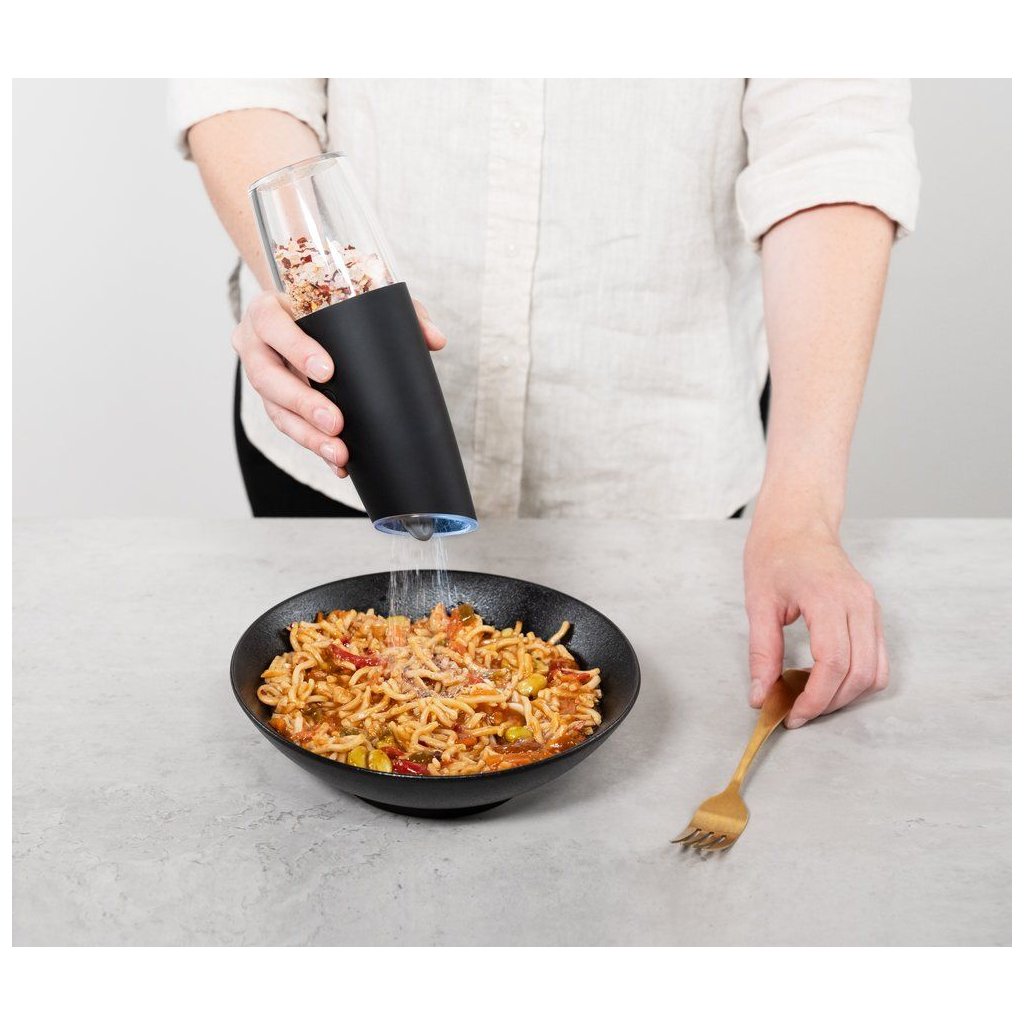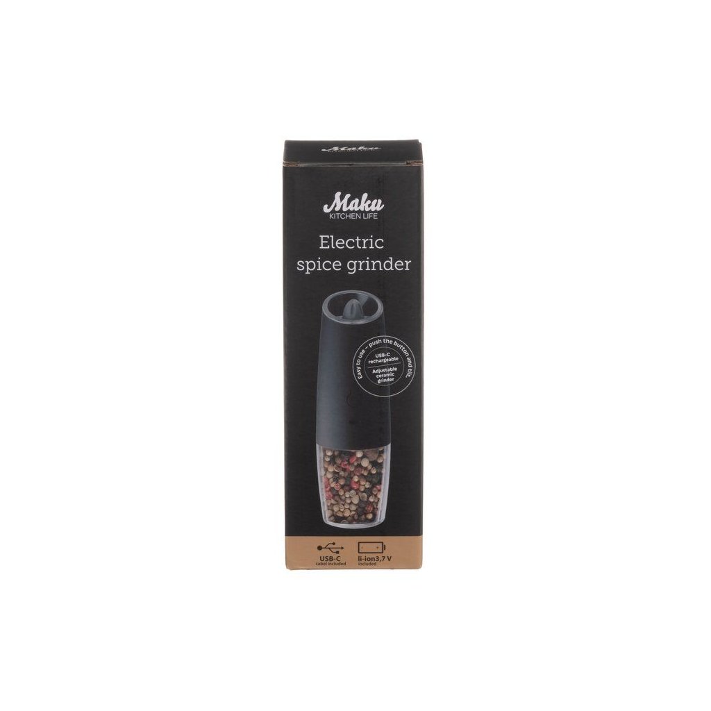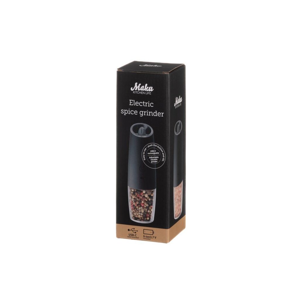 Elektrický nabíjateľný mlynčk na korenie Maku s možnosťou nastavenia mletia je tak jednoduchý na používanie, že to zvládne aj malé dieťa. Stačí stlačiť tlačidlo a nakloniť mlynček a je to! Zároveň si môžete nastaviť aj hrubosť mletia, takže je naozaj veľmi univerzálny. Robustná ale zato ľahká konštrukcia zabezpečuje dlhú životnosť rovnako ako kvalitná lítiová batéria.