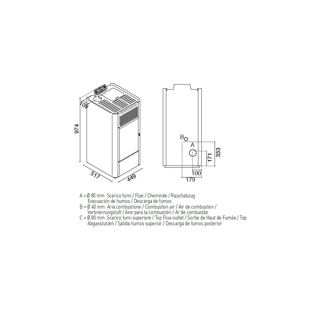 Napojenie dymovodu | zadný alebo horný / 80 mm |