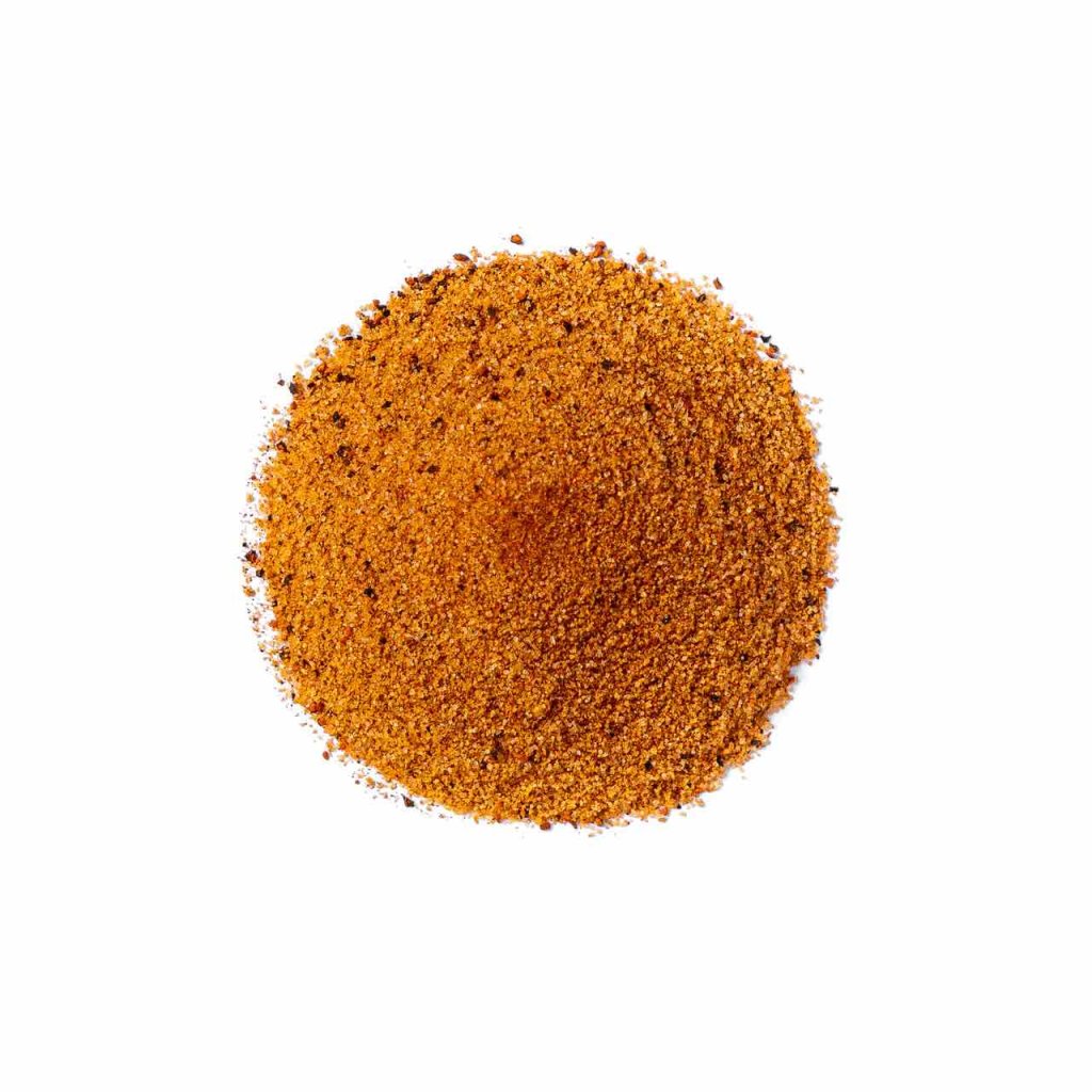 Zloženie: Cukor, morská soľ, hnedý cukor, paprika, chilli prášok, cesnak, cibuľa, čierne korenie, prírodná dymová príchuť, pekanový olej, koreniny a kremík. Pálivosť 1/5.