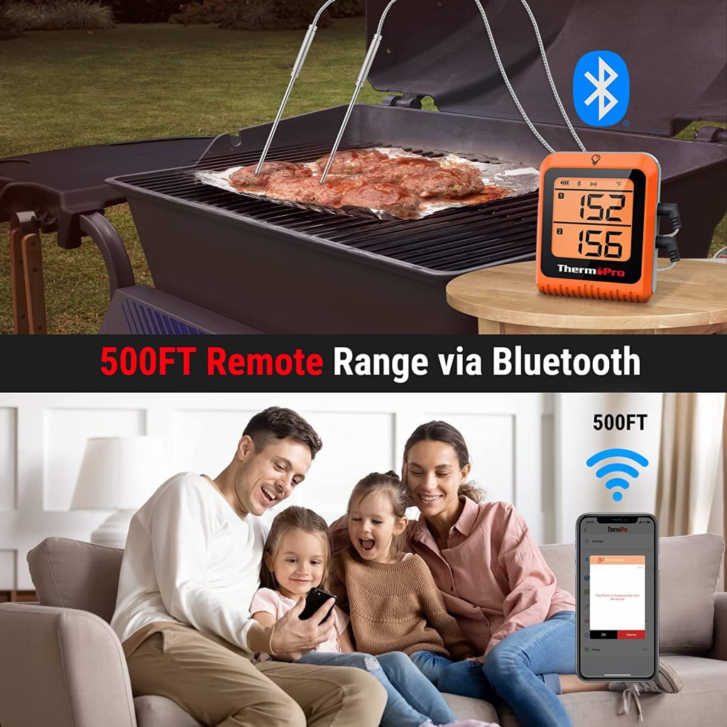 ZariadenieThermoPro TP920 je vybavené technológiou, ktorá umožňuje monitorovať vnútornú teplotu dvoch rôznych porcií mäsa. Využíva najmodernejšiu technológiu Bluetooth 5.0, ktorá poskytuje silné a spoľahlivé pripojenie, vďaka ktorému môžete sledovať priebeh prípravy mäsa až na vzdialenosť 150 metrov! Ak sa dostanete mimo tohto dosahu, na telefóne sa zobrazí upozornenie, ktoré vás bude informovať, aj keď sa vrátite do dosahu signálu.